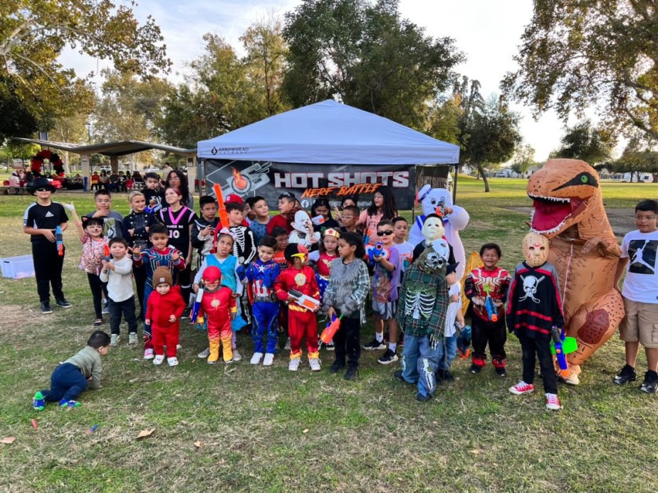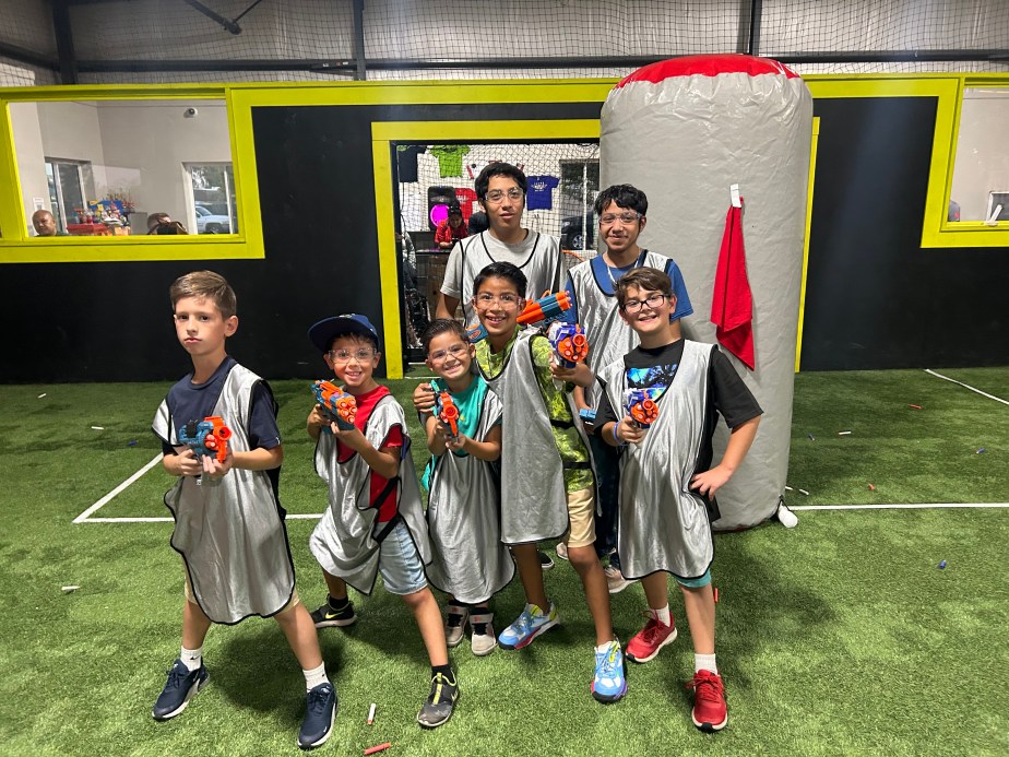 We host a 2 hour battlefield experience for up to 28 participants (2 teams of 14) set up in the space of your choosing. However, we do require an open space of approximately 50′ x 50′ to create your battle arena.